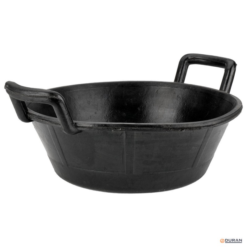 Espuerta de caucho resitente para trabajos de albañileria, con capacidad de 11 litros, acabado en color negro, fabricado por Bellota.