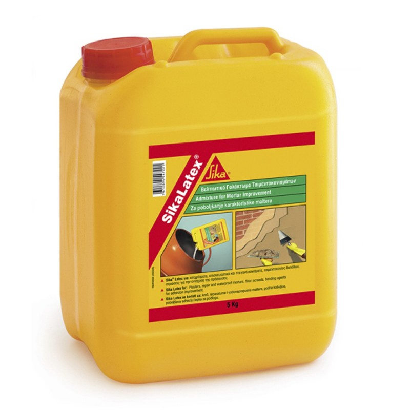 Emulsión sintética que mezclada con agua sirve para la confección de mortero o lechada de cemento, consiguiendo una gran adherencia y resistencia al agua, fabricada por Sika y suministrado en garrafas de 5 y 25 kilos.