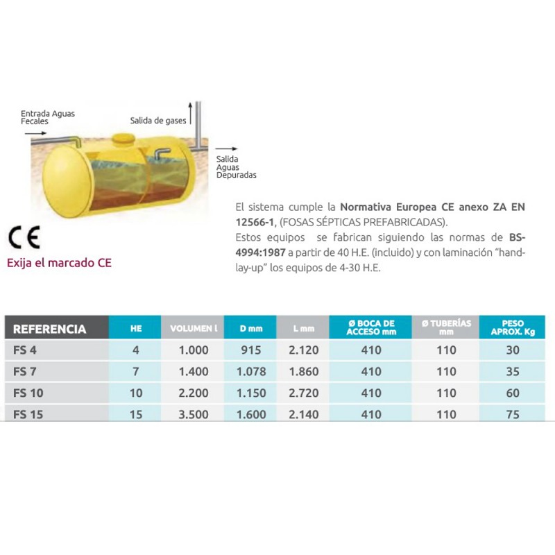 Fosa séptica decantador-digestor modelo FS7 de 1400 litros de volumen, fabricada por REMOSA. Material no disponible en stock, entrega aprox. 2-3 semanas.
